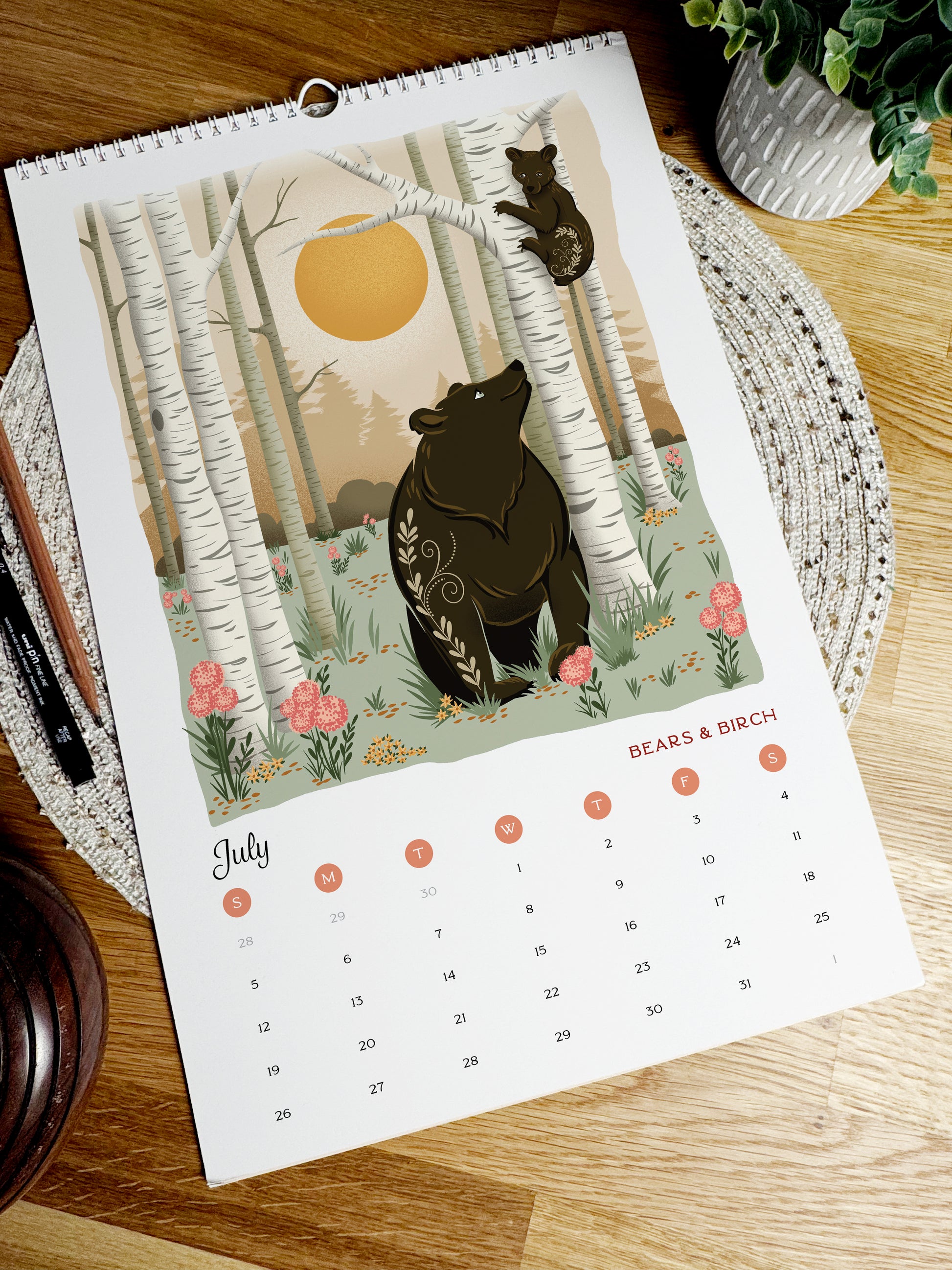 Step into a whimsical world where flora and fauna intertwine. Botanicals & Beasts celebrates the unexpected harmony between animals and the plants they call home — from hummingbirds and hibiscus to foxes nestled among ferns. Each month features one of Roxy Lane’s hand-drawn illustrations, rich with color, curiosity, and natural wonder.